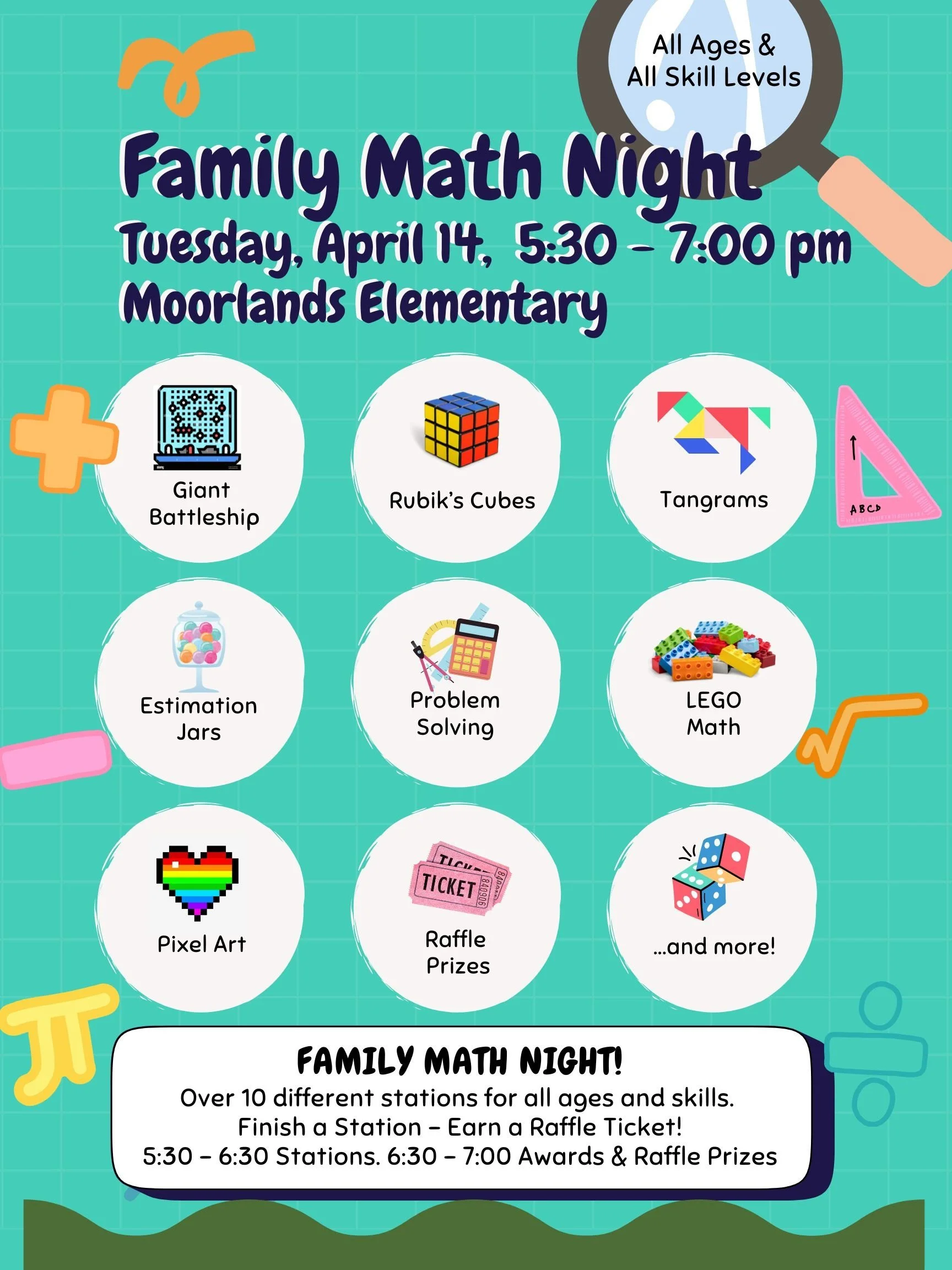 /Math Night 2026 is here! Please join us for this exciting event on April 14th from 5:30-7:00pm. This is a whole family event with games and activities for all ages and math levels. There are prizes, raffles, and TONS OF MATH!