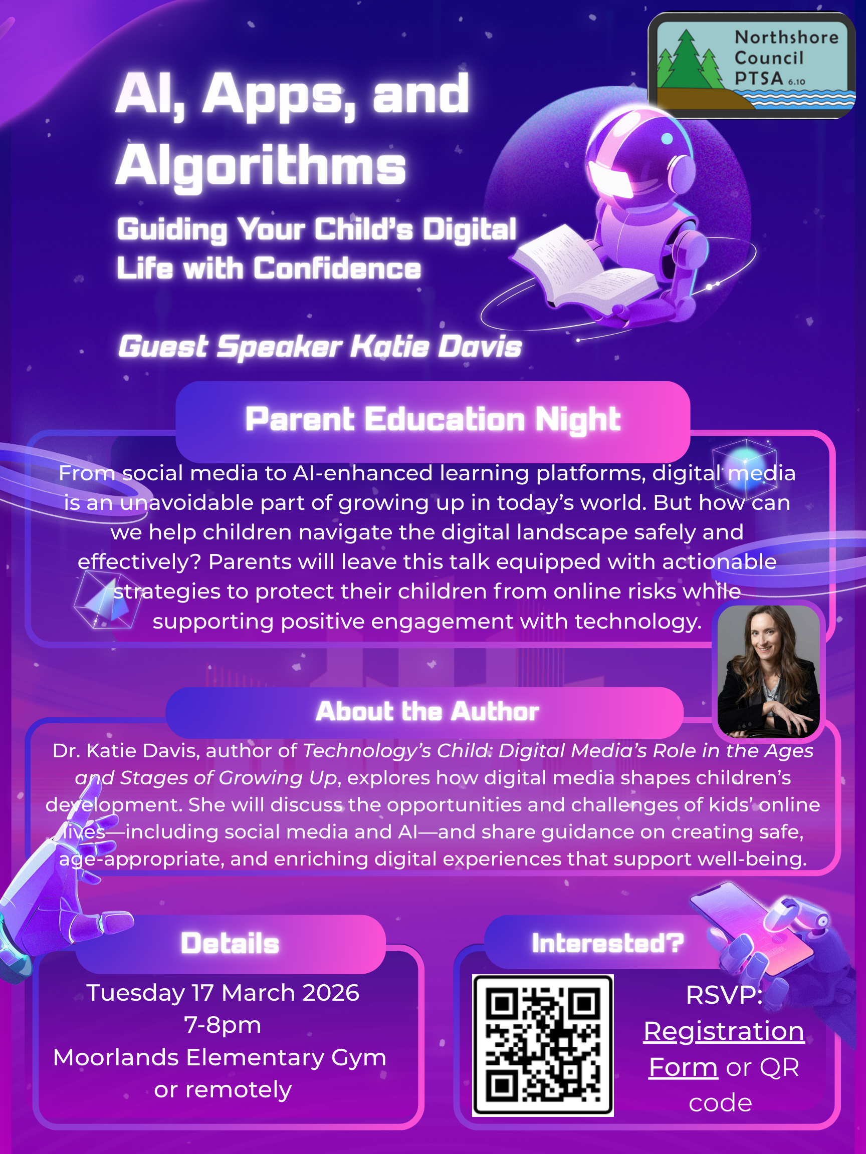 /AI, social media, and powerful algorithms are shaping how our kids' world every day. Join us Tuesday, March 17 from 7-8pm at Moorlands or remotely on Zoom for a practical, empowering session to help you navigate it with confidence. Details on the flyer below! Link to Register HERE