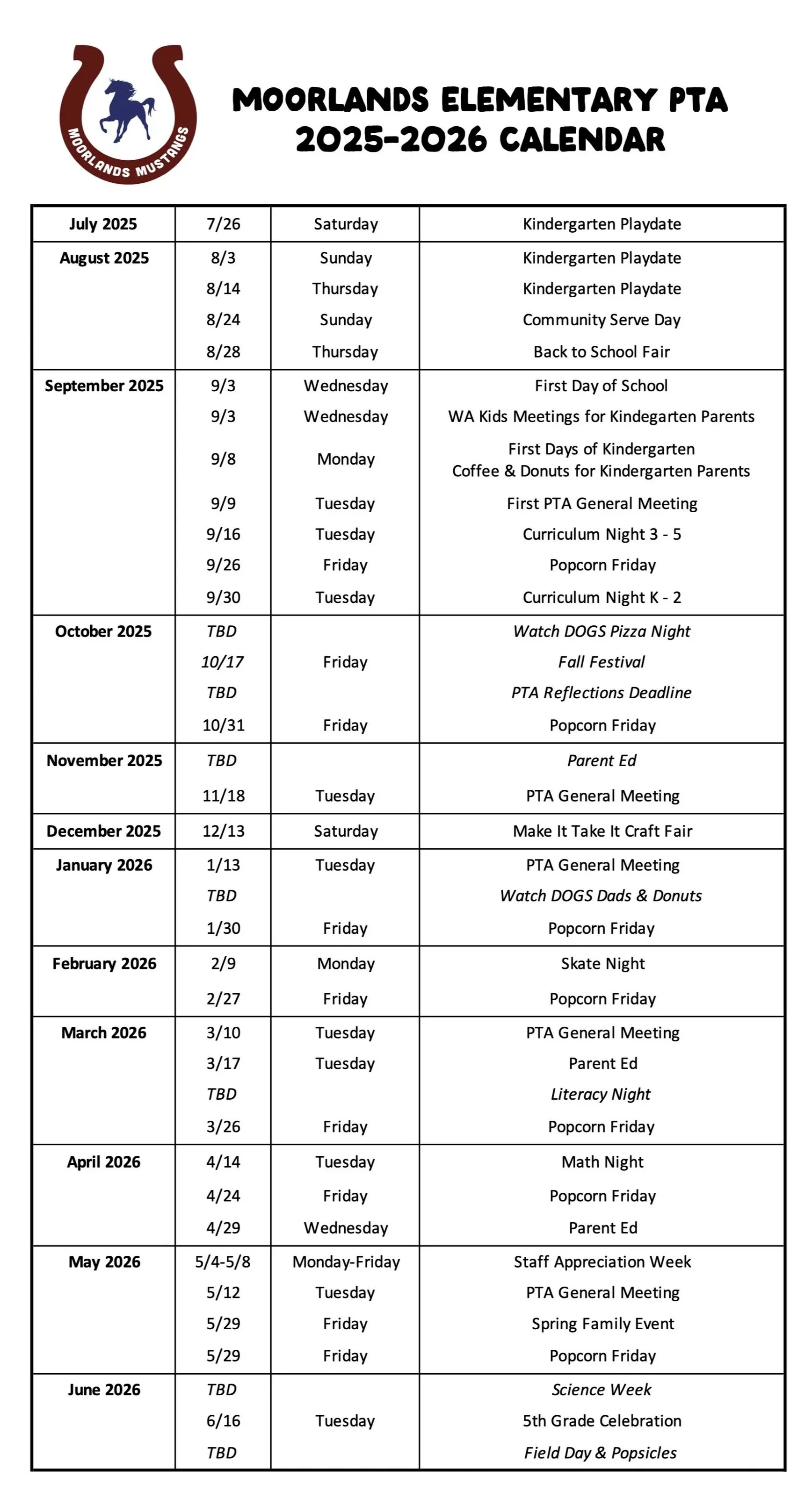 For your convenience we have designed an easy-to-read one page calendar with all of the key dates for the school year. Updated 03/31/26